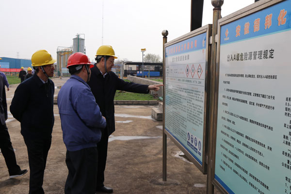 3月23日上午,淮南市委常委、副市長楊東坡一行蒞臨安徽德邦公司檢查安全生產(chǎn)工作。市經(jīng)濟技術開發(fā)區(qū)管委會主任張海濤,市應急管理局局長李寶云等省市安全專家一起陪同檢查。楊市長一行在公司領導的陪同下分別來到液氨貯槽和甲醇罐區(qū)實地查看安全生產(chǎn)運行情況,要求企業(yè)認真汲取江蘇省鹽城市響水縣天嘉宜化工有限公司“3•21”爆炸事故教訓,全面排查治理安全隱患,嚴格落實安全生產(chǎn)責任制,開展全員安全警示教育,扎實做好當前化工和危險化學品安全生產(chǎn)工作,嚴防各類事故的發(fā)生。